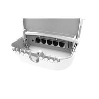 OmniTIK 5 ac features five Gigabit Ethernet ports and support for 802.11ac. It’s equipped with a powerful 720MHz CPU, 128MB RAM, high power 802.11a/n/ac Dual Chain wireless (support for AC as well as backwards compatible with regular 802.11a/n CPE) and comes with a new design weatherproof outdoor enclosure, two integrated 7.5dBi 5GHz omni antennas, a power supply, a PoE injector and a mounting kit.